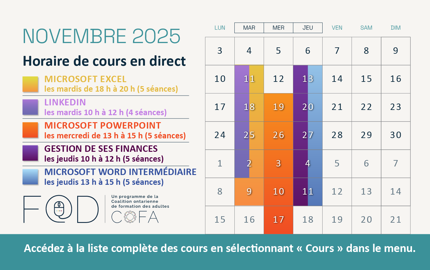 Cours à l’affiche